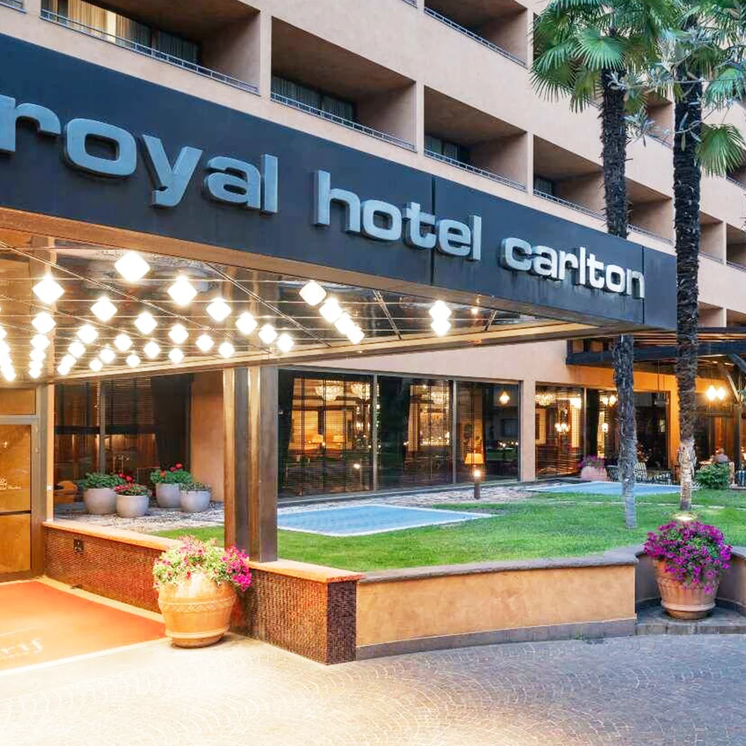 Construit en 1970, le Royal Hotel Carlton compte 236 chambres et abrite 200 places de parking. Outre un restaurant, il héberge également un vaste espace de bien-être au rez-de-chaussée, comportant un spa, un sauna et un hammam.